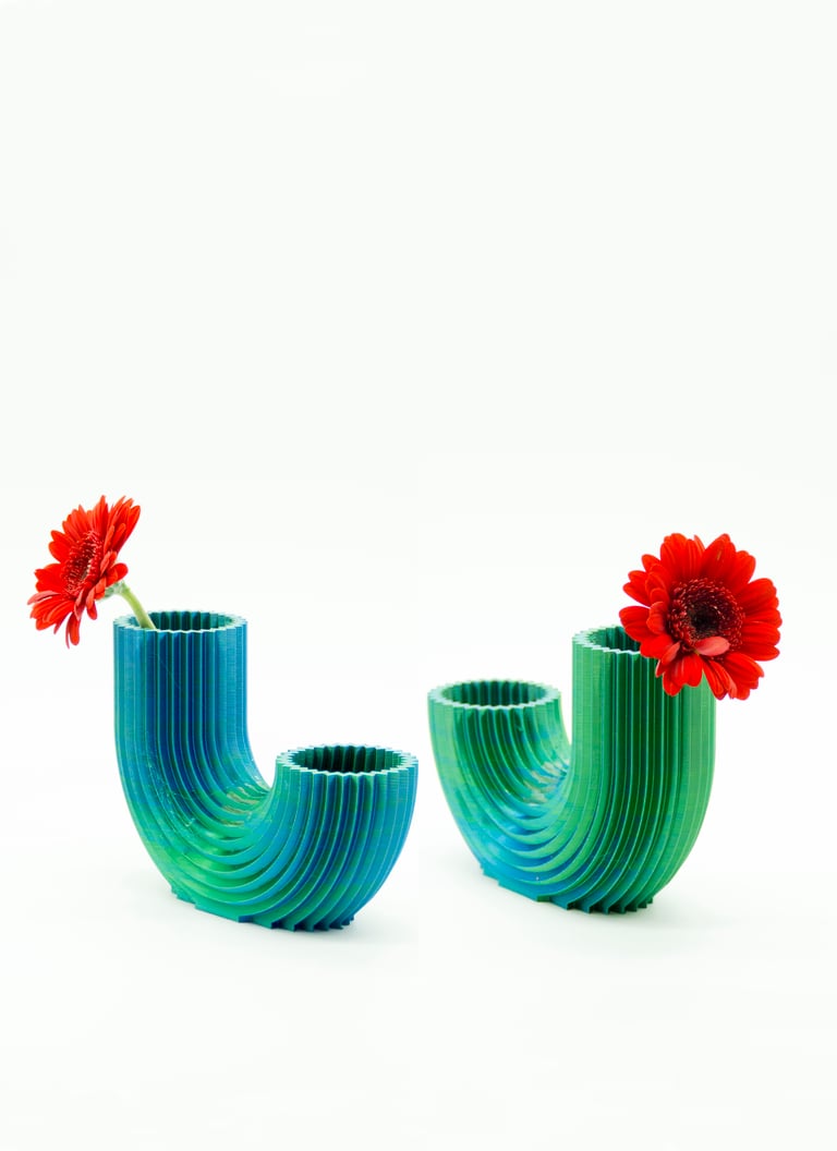 GIOVANNI est un vase imprimé 3D avec un fil éco-PLA.